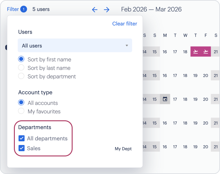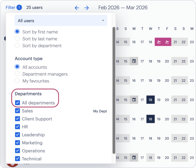 By default, here's what they can see in their Wallchart filter - they can select to view all departments: