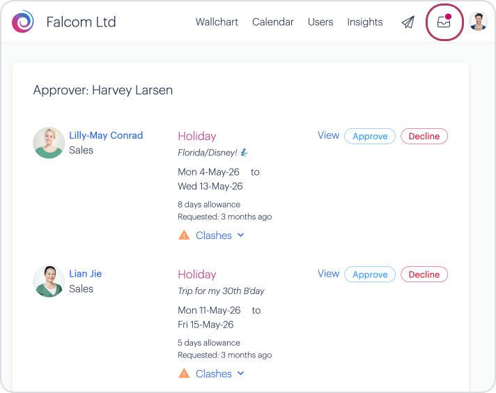 Within Timetastic, you can see all outstanding leave requests in your inbox here: